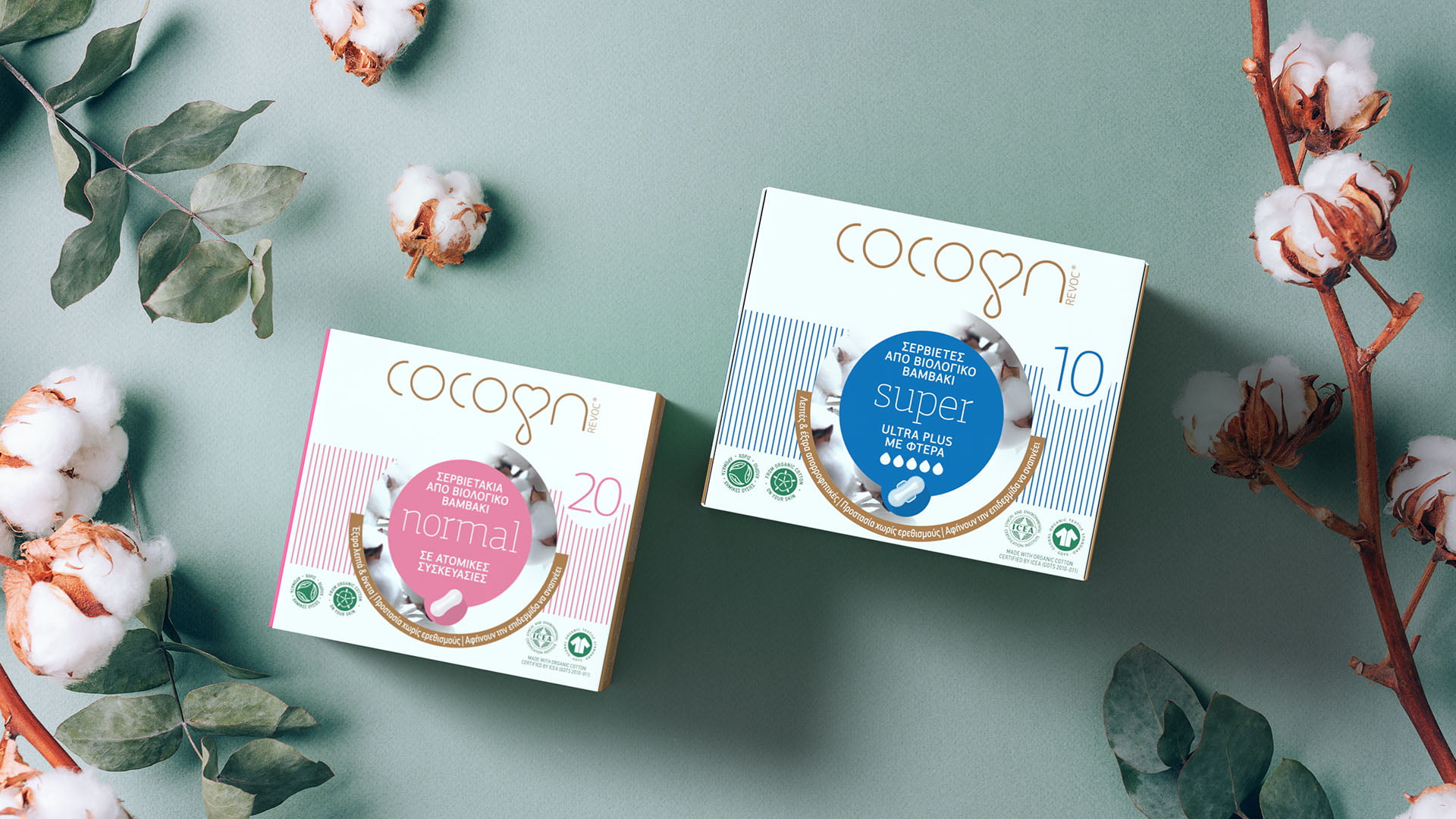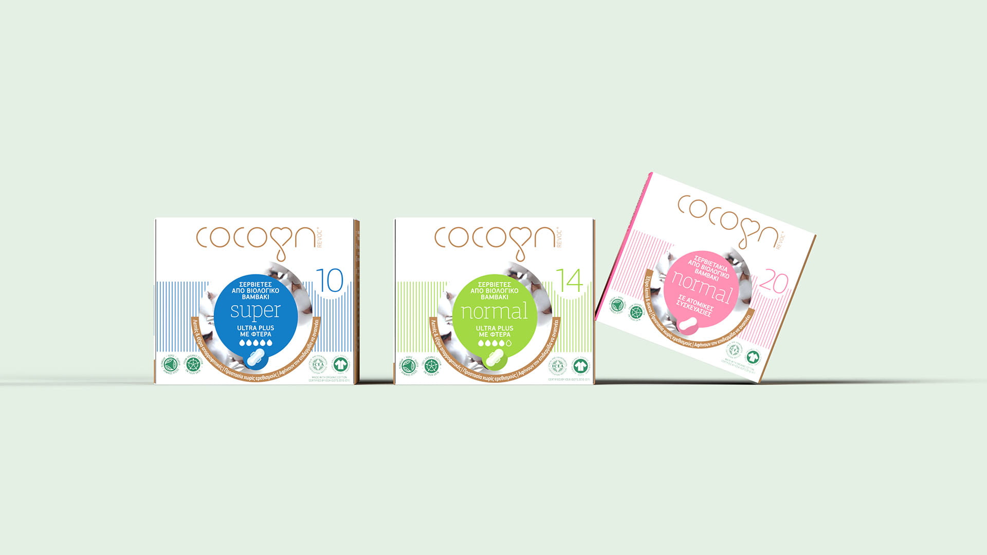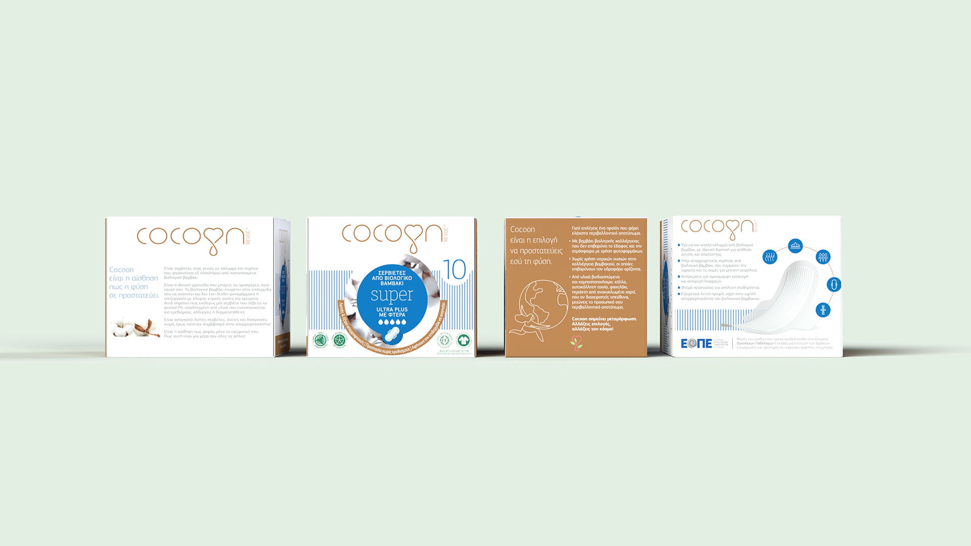 We were asked to create the branding for the first fully biodegradable sanitary pads on the Greek market made with 100% organic cotton, the purest and most environmental choice a woman can make for her personal hygiene. The brand would end up on super market shelves, among fierce competition, where the assets of the product could easily turn out to be harmful preconceptions about it; could a sanitary pad made entirely of organic cotton, stand up to the huge global brands that have spent years and years investing in research and patented revolutionary materials?