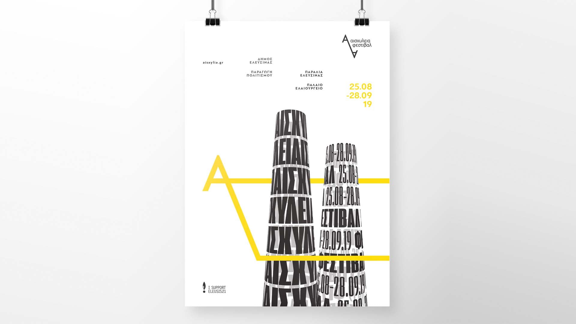 Aeschylia Festival is one of the most daring and multifaceted cultural festivals in Greece. In 2018, in view of Eleusina becoming the European Capital of Culture 2022, the festival acquired a visual identity within the framework of a strategy to turn the city into a European cultural destination. One year later, a more specific goal was targeted: to make this polymorphic identity, a point of reference for the festival’s dynamic communication strategy.