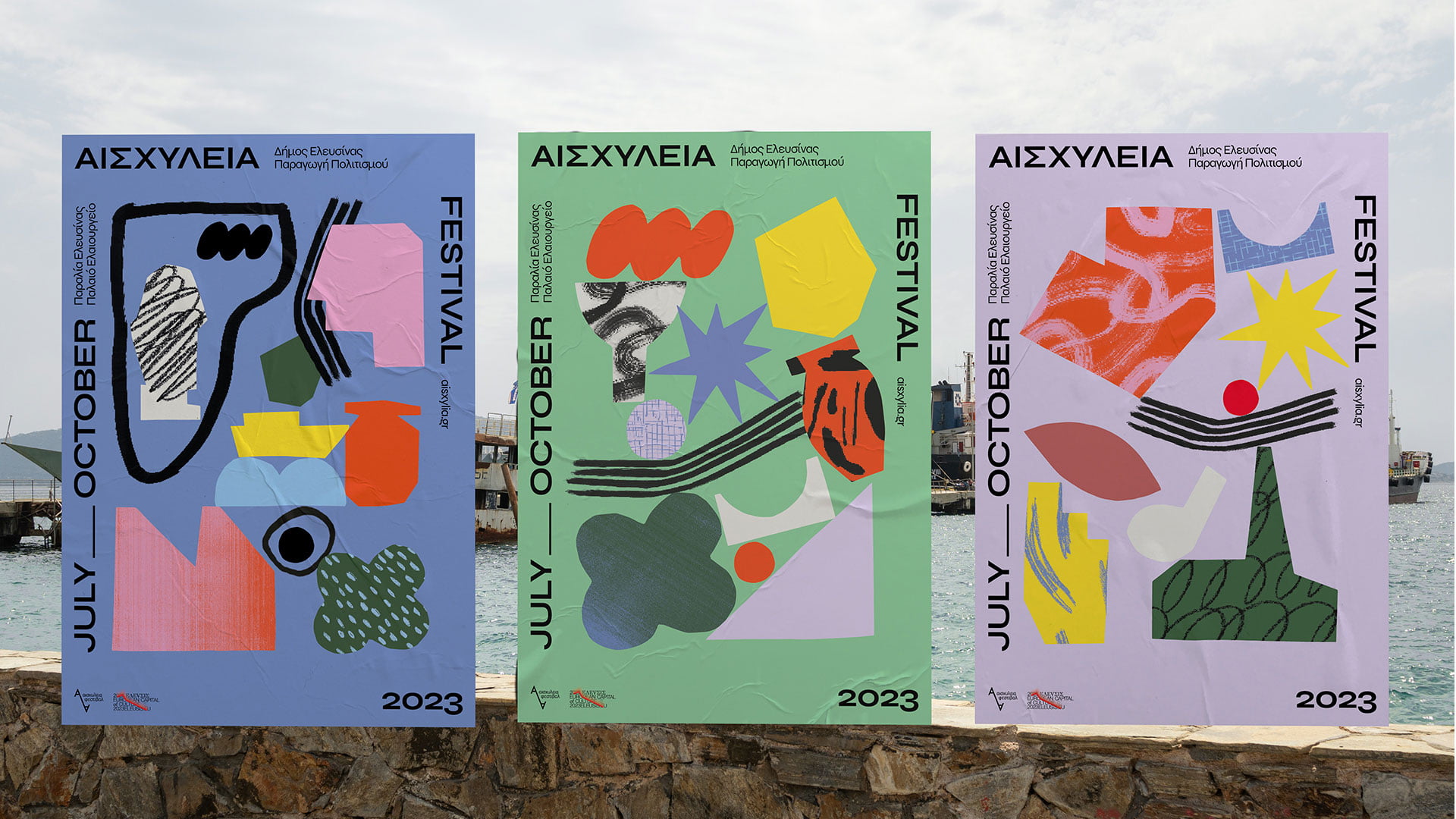 Aeschylia Festival represents a unique blend of ancient heritage and contemporary art, and each year we have the honor of crafting a visual campaign that encapsulates its spirit and vision. For 2023, the concept embodied the powerful notion of reclaiming the past as a catalyst for future change. This theme resonates deeply with Elefsina’s rich history and its ongoing transformation into a vibrant cultural hub. The concept highlights how ancient traditions and contemporary creativity converge, fostering a rebirth that is not just a return to roots but a redefinition of what the future holds. We crafted a series of dynamic and thought-provoking designs that echo the festival’s eclectic mix of performances, music, dance and visual arts.