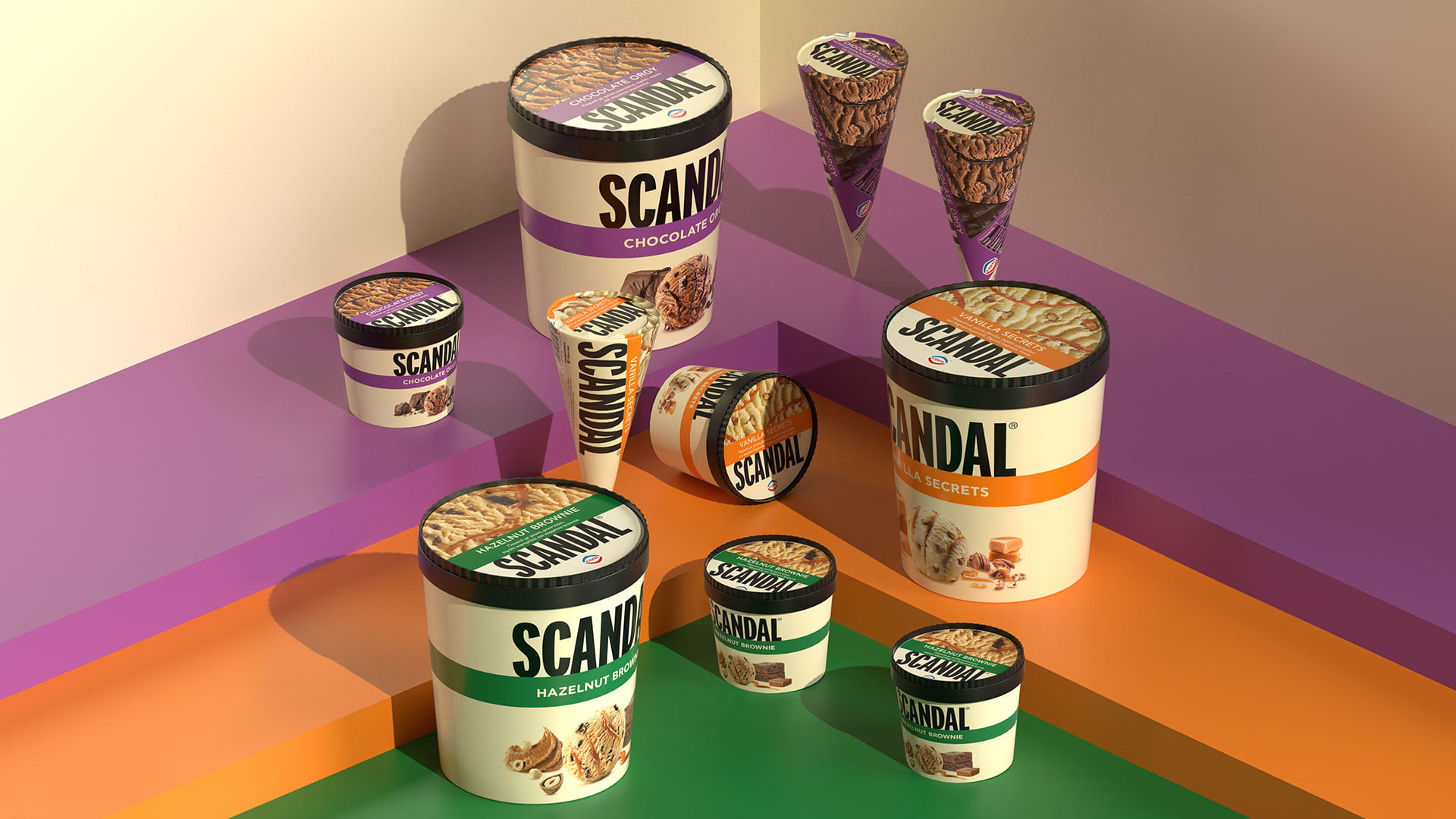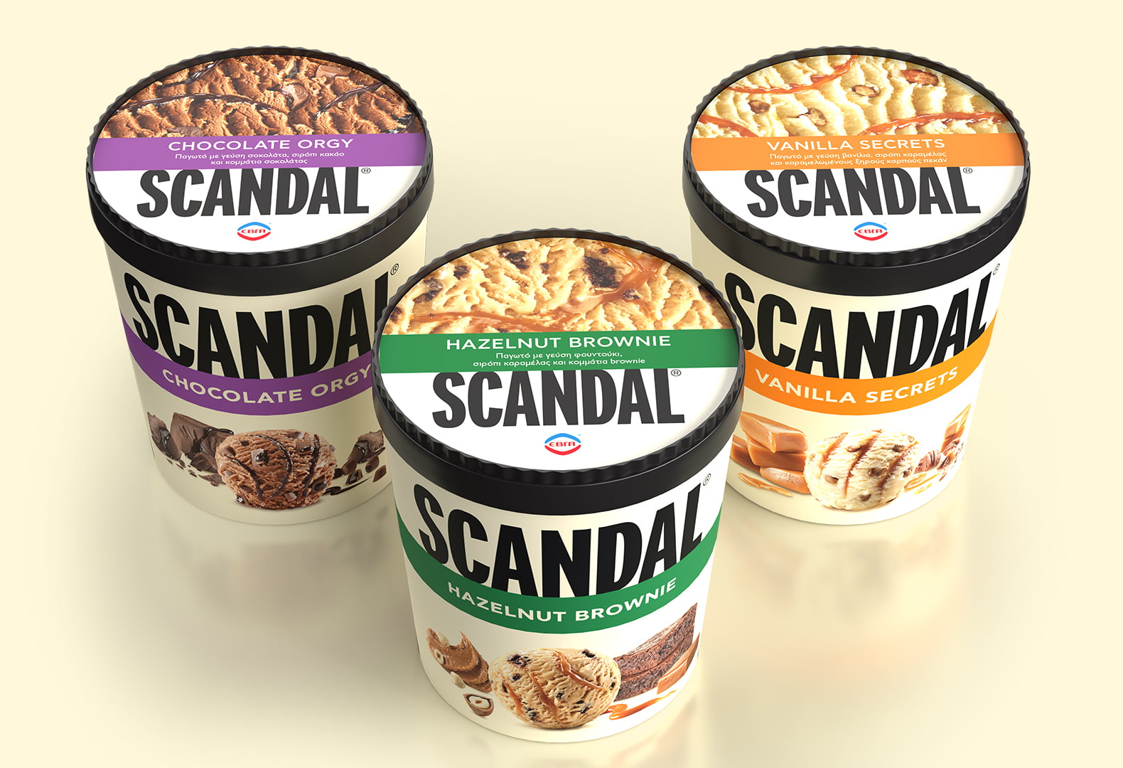 Evga Scandal ice creams are one of the most popular Greek brands in their category. On the occasion of the launch of new flavors and changes in the size of some SKUs, the packaging required a lifting, to renew consumer interest and to strengthen the image of the brand family on the shelf.